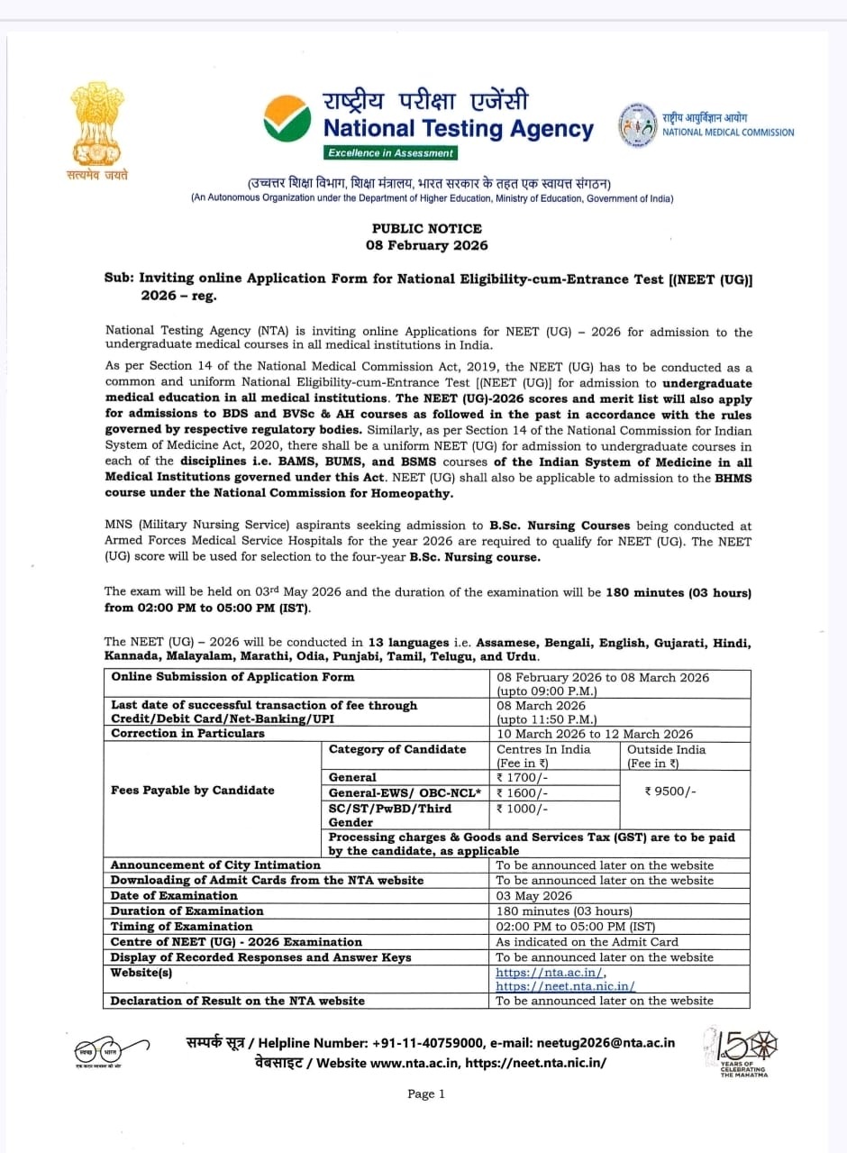 शिक्षा इलाहाबाद हाईकोर्ट के आदेश से CLAT UG 2026 प्रक्रिया में बड़ा बदलाव — मेरिट लिस्ट संशोधित होगी, तीसरी एडमिशन लिस्ट स्थगित Dehradun Milap February 5, 2026 0 कॉमन लॉ एडमिशन टेस्ट (CLAT) UG 2026 से जुड़ी काउंसलिंग प्रक्रिया में इलाहाबाद हाईकोर्ट के […]